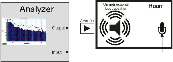 Lautsprecher und Mikrofon. Diese Messung der Nachhallzeit funktioniert nur für
