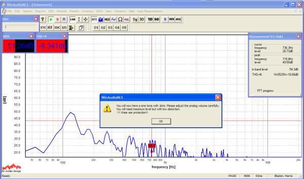 Lautsprecher hören Sie jetzt ein rauschähnliches Signal. Der Analyzer zeigt